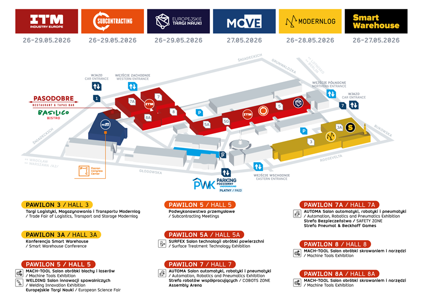The ITM INDUSTRY EUROPE fair will be held on 26-29.06.2026 at the Poznań International Fair. At the same time, you will be able to visit the following exhibitions: Trade Fair of Logistics, Transport and Storage Modernlog, and Subcontracting.