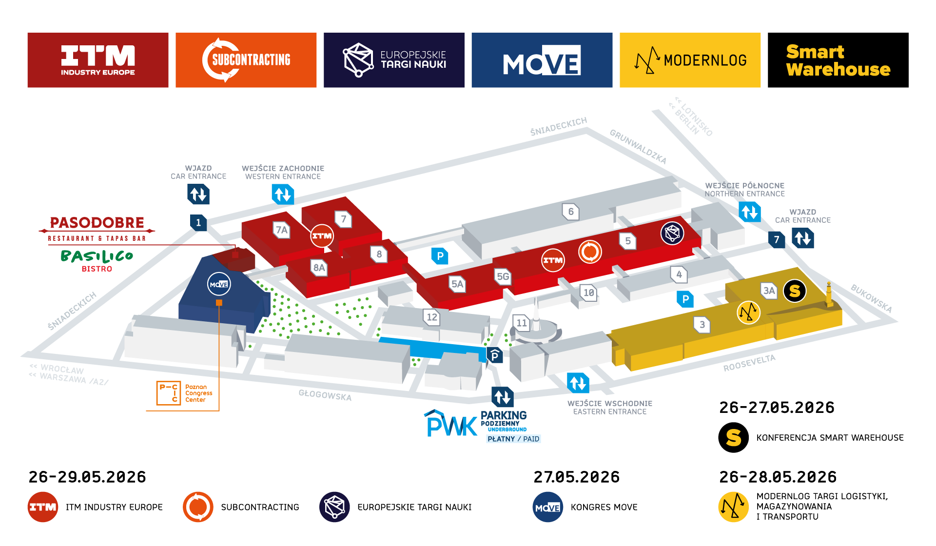 Targi ITM INDUSTRY EUROPE odbędą się na terenie Międzynarodowych Targów Poznańskich. W tym samym czasie będzie można jednocześnie zwiedzić ekspozycję: Targów Logistyki, Magazynowania i Transportu Modernlog oraz Targi Subcontracting.